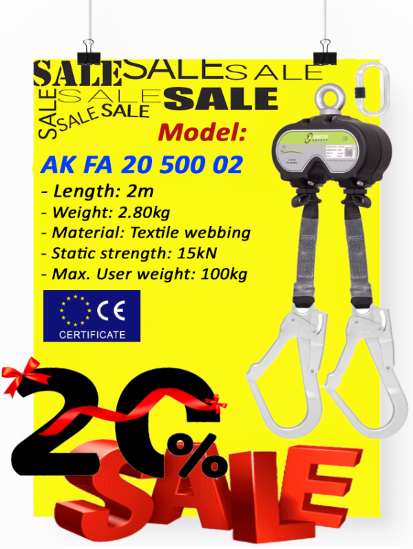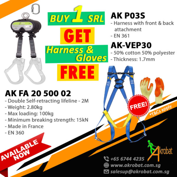 This April 2023, Akrobat offers 20% discount for 2mtr Self-retracting lifeline. U.P. to 20% !! No minimum quantity